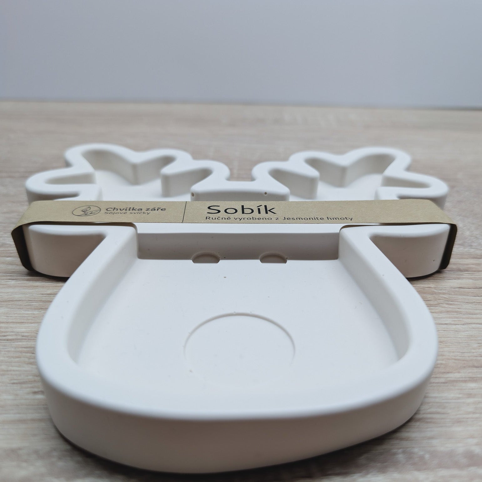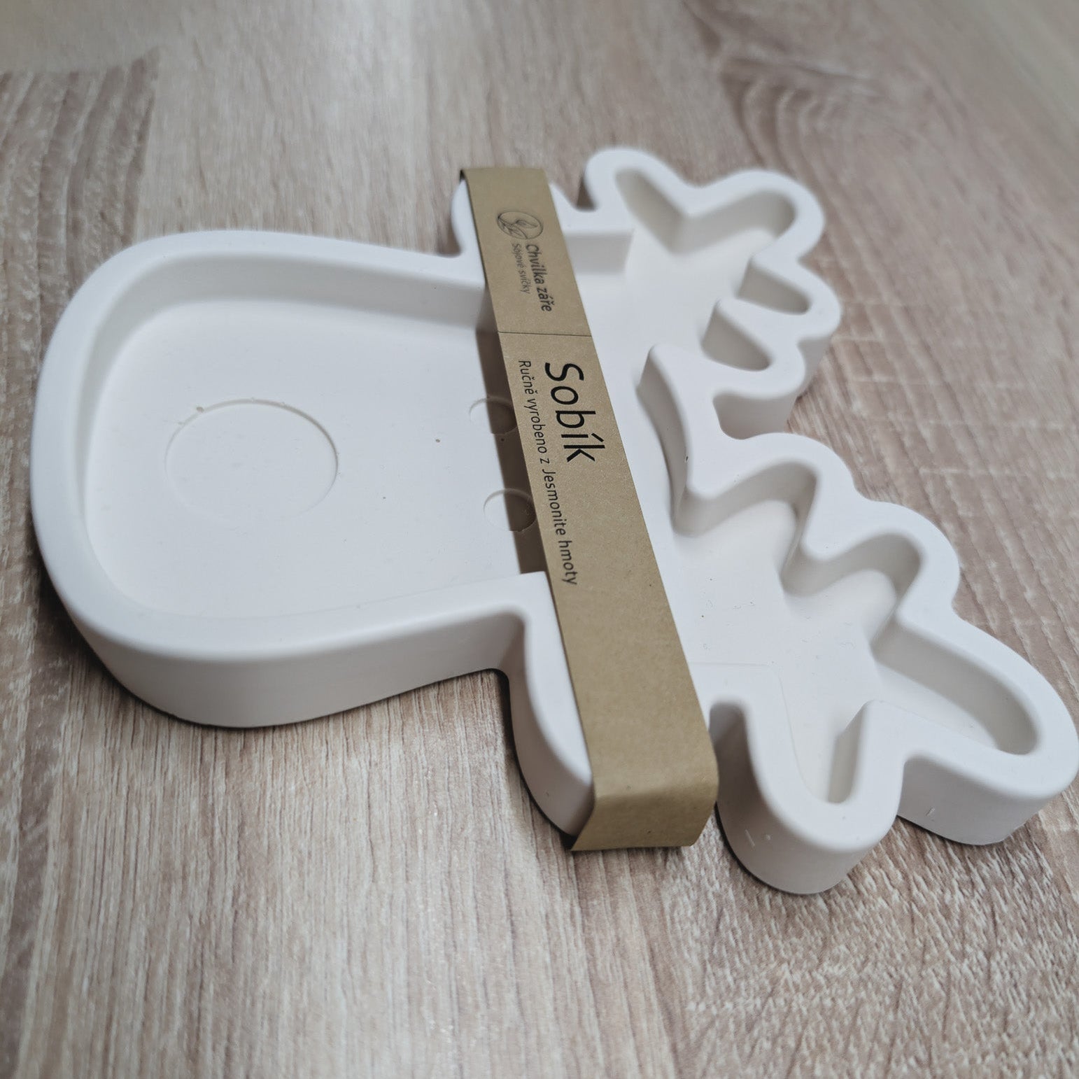 Ozdobte si sváteční stůl s naším roztomilým podtáckem ve tvaru sobíka, ručně vyrobeným z Jesmonite. Jeho minimalistická bílá barva přináší do interiéru severskou eleganci a je skvělým doplňkem pro Vaše svíčky, šperky nebo šálky. Tento originální podtácek je výsledek poctivé ruční práce, lité s péčí přímo v Česku.